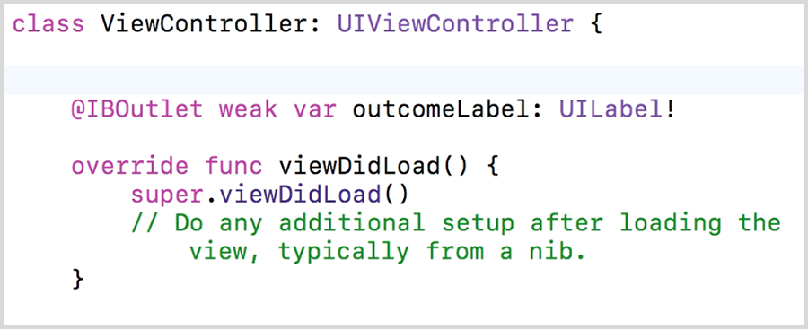 Now that the label on the screen is connected to our code, you can update the text of our label every time you play the game. You named the label outcomeLabel and you can access the label anywhere in the View Controller by simply using its name. So if you want to update the text of the label, you can assign a new value to the label's text property: