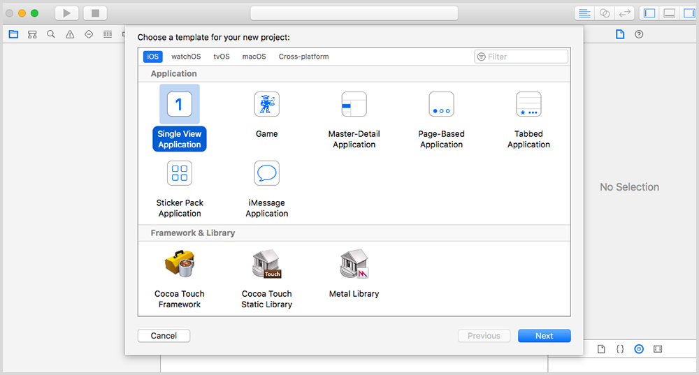 - Start by Creating a new application in Xcode and select the