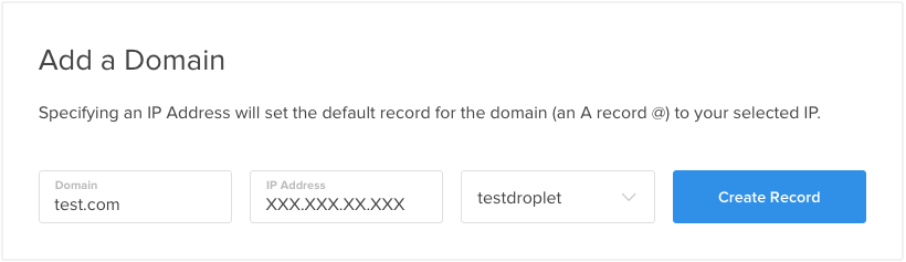 Back on Digital Ocean add your domain name to your DNS records: