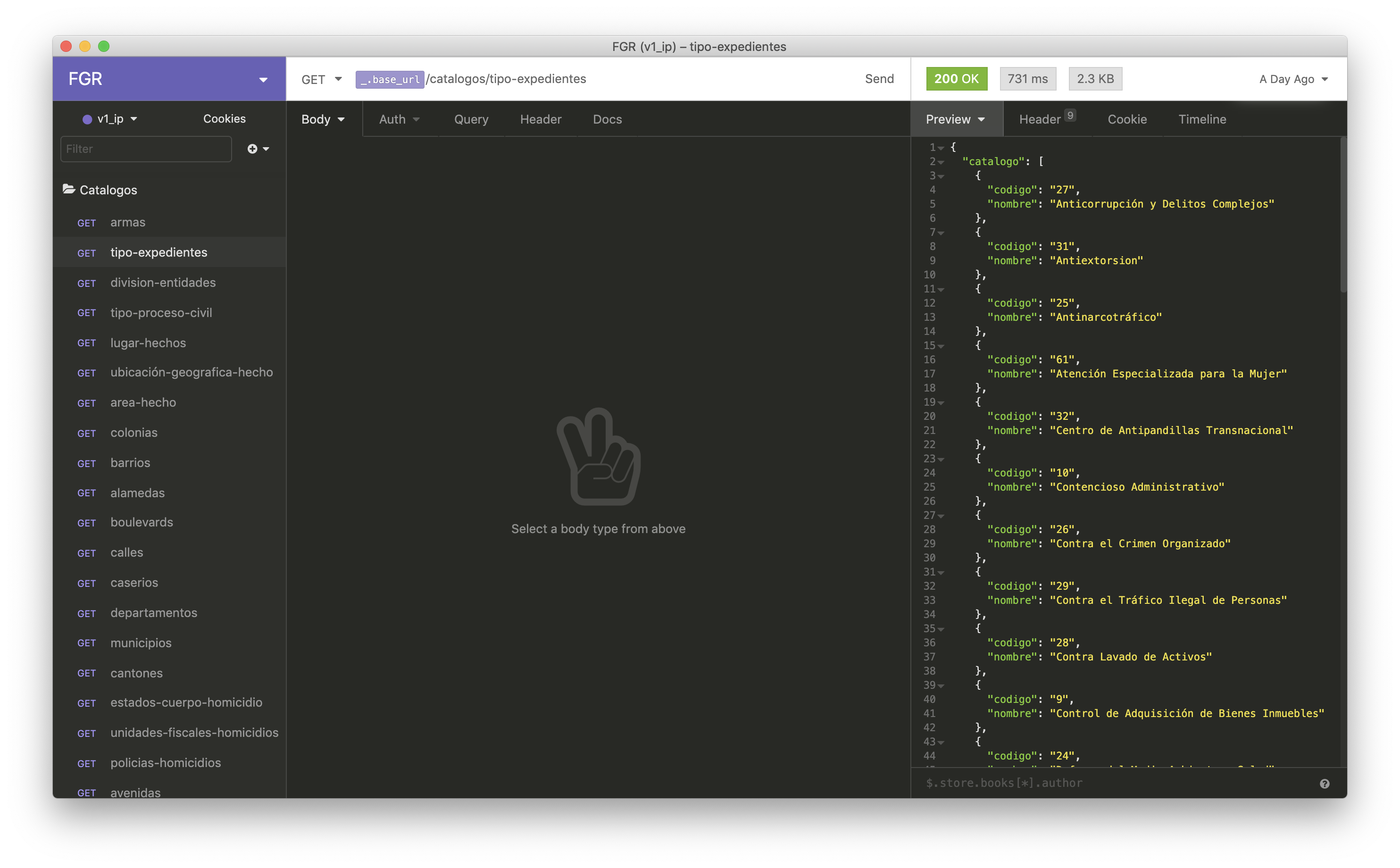 Los endpoints detallados arriba tiene la siguiente estructura (la data varia segun el endpoint):
