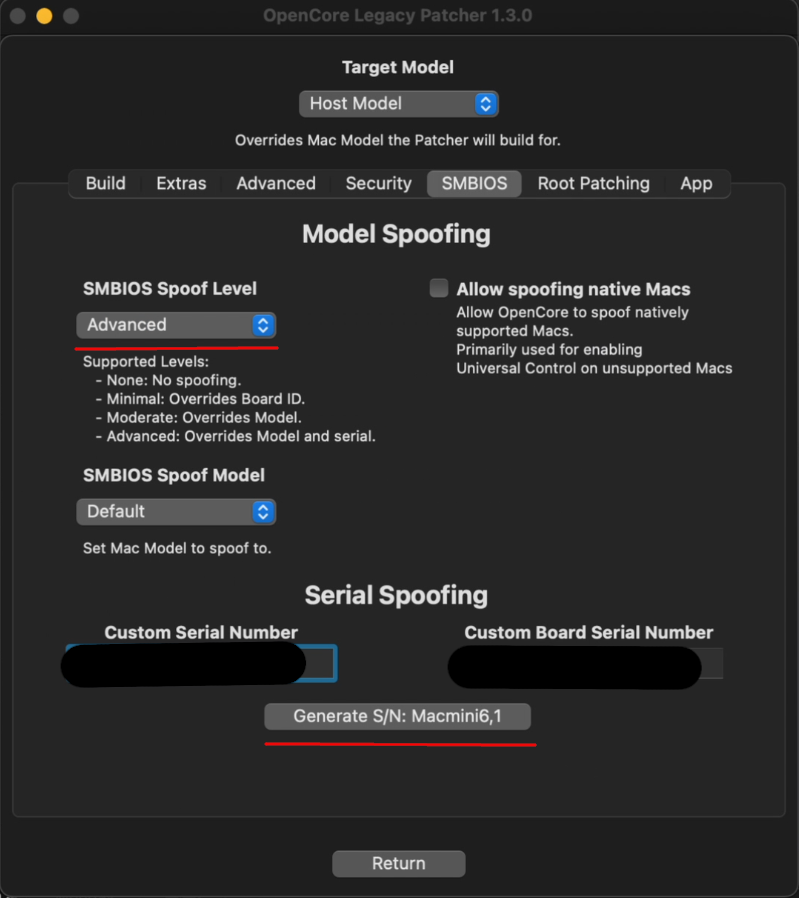 Advancedand clickGenerate S/N <your mac model> - Check your serial number's validity at https://checkcoverage.apple.com. Don't worry if it says