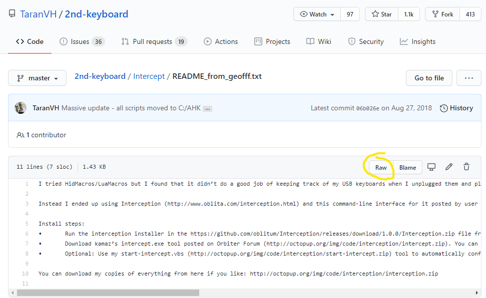 - Click the "raw" button (like you did), to get the "raw" form of the text file sent to your machine
