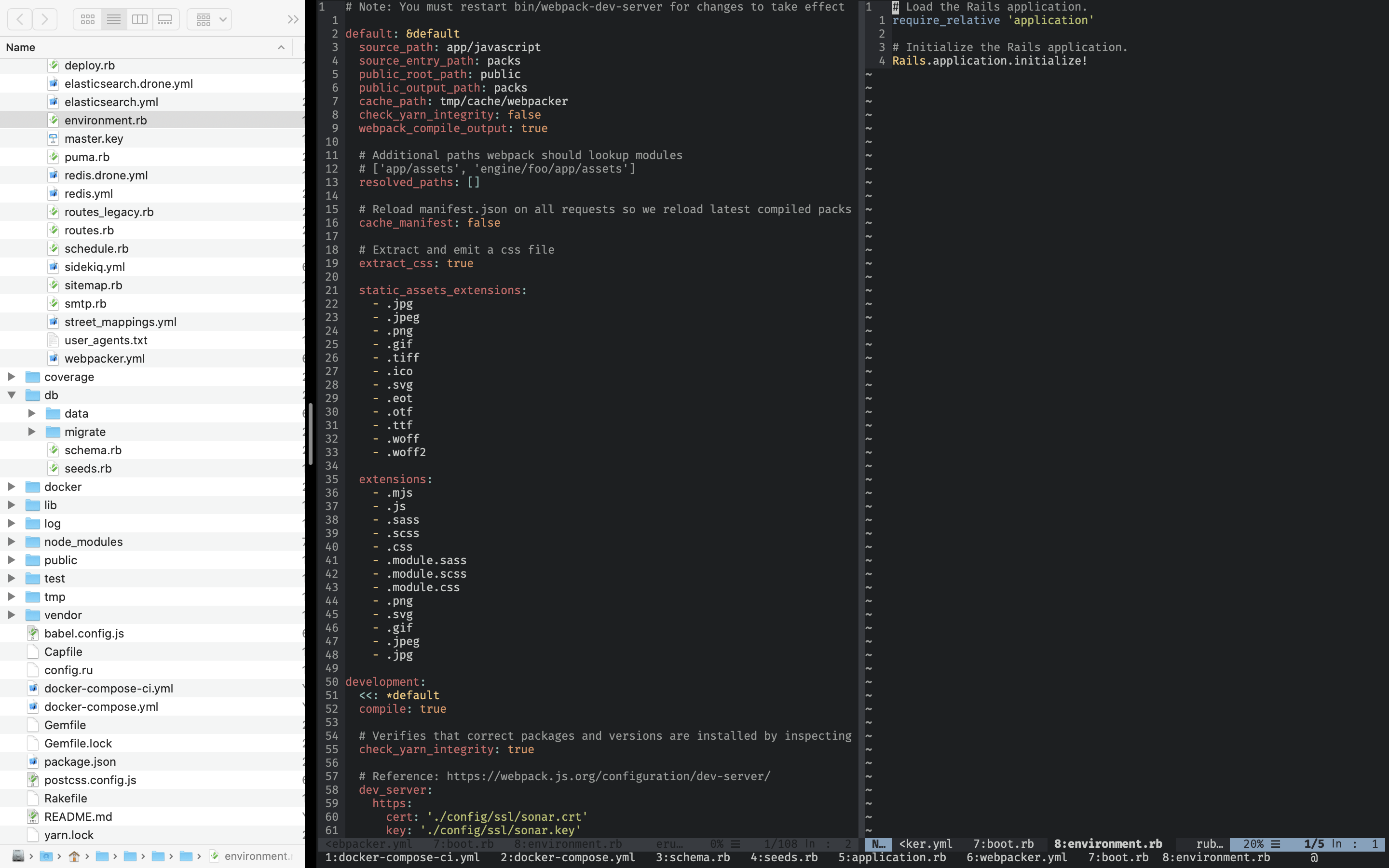 - in MacVim preferences, set "Open files from applications" to "in the current window" and select "and set the argslist" from the dropdown - this allows to open files from the Finder window in the current MacVim window (file will be opened in a new buffer)