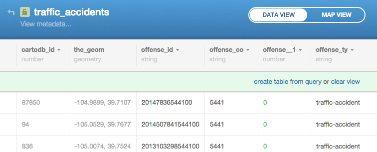 Go to your traffic_accidents table and let's start by creating a new visualization