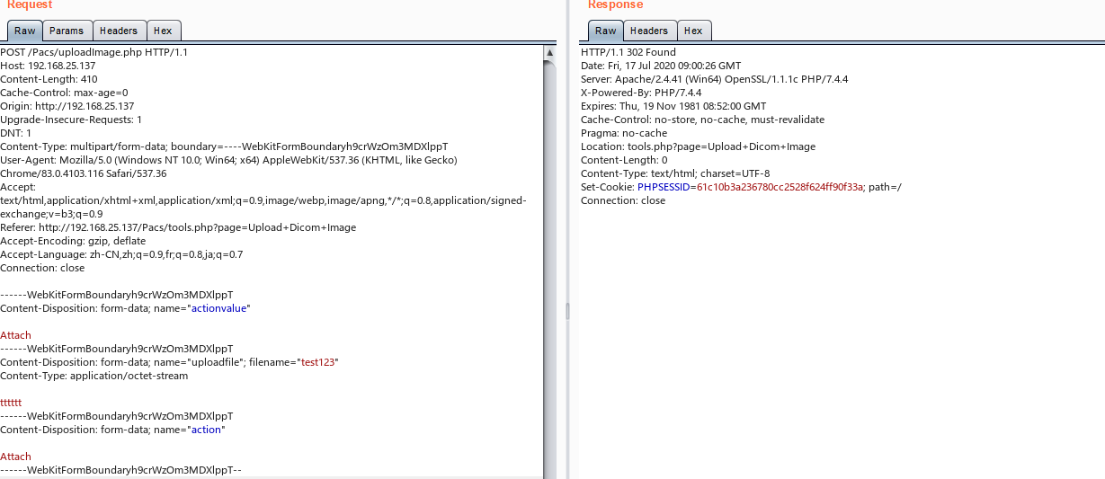 MDPACS/PACS/php/importWorklist.php/MDPACS/PACS/php/uploadImage.phpand missing authentication inoriginalImage.php- those page should only let authenicated user to upload file, but due to broken auth, anyone can upload file.