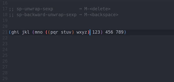 An animated cheatsheet for smartparens using the example configuration specified here by the smartparens author. Inspired by this tutorial for paredit.