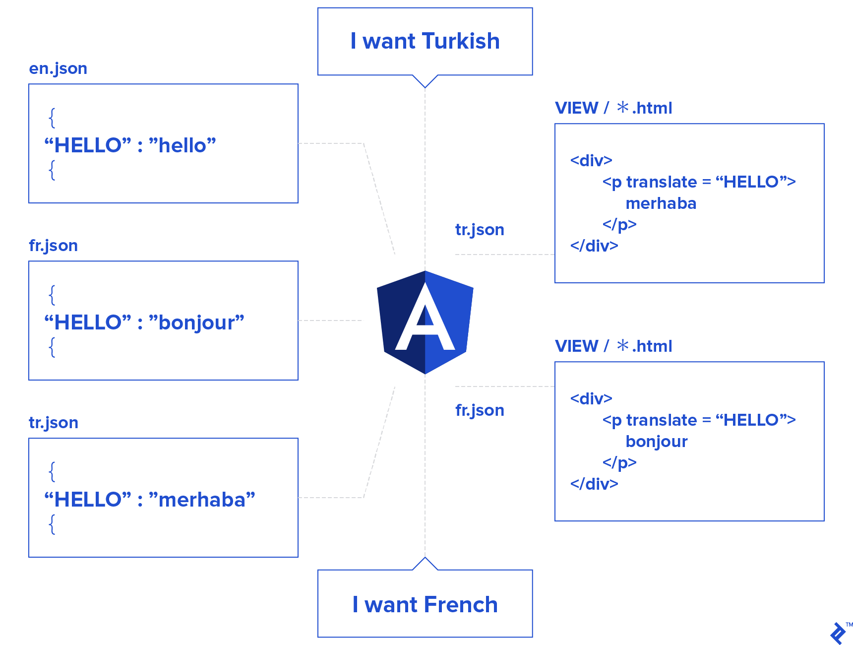 While the earlier version employs the English language(default language) and internationalization is a procedure used in software applications so that they can be converted to multiple languages. Angular offers libraries for its implementation (ngx-translate,i18n). While Angular has some built-in i18n functionality, ngx-translate is a third-party package that offers functionality for language support.