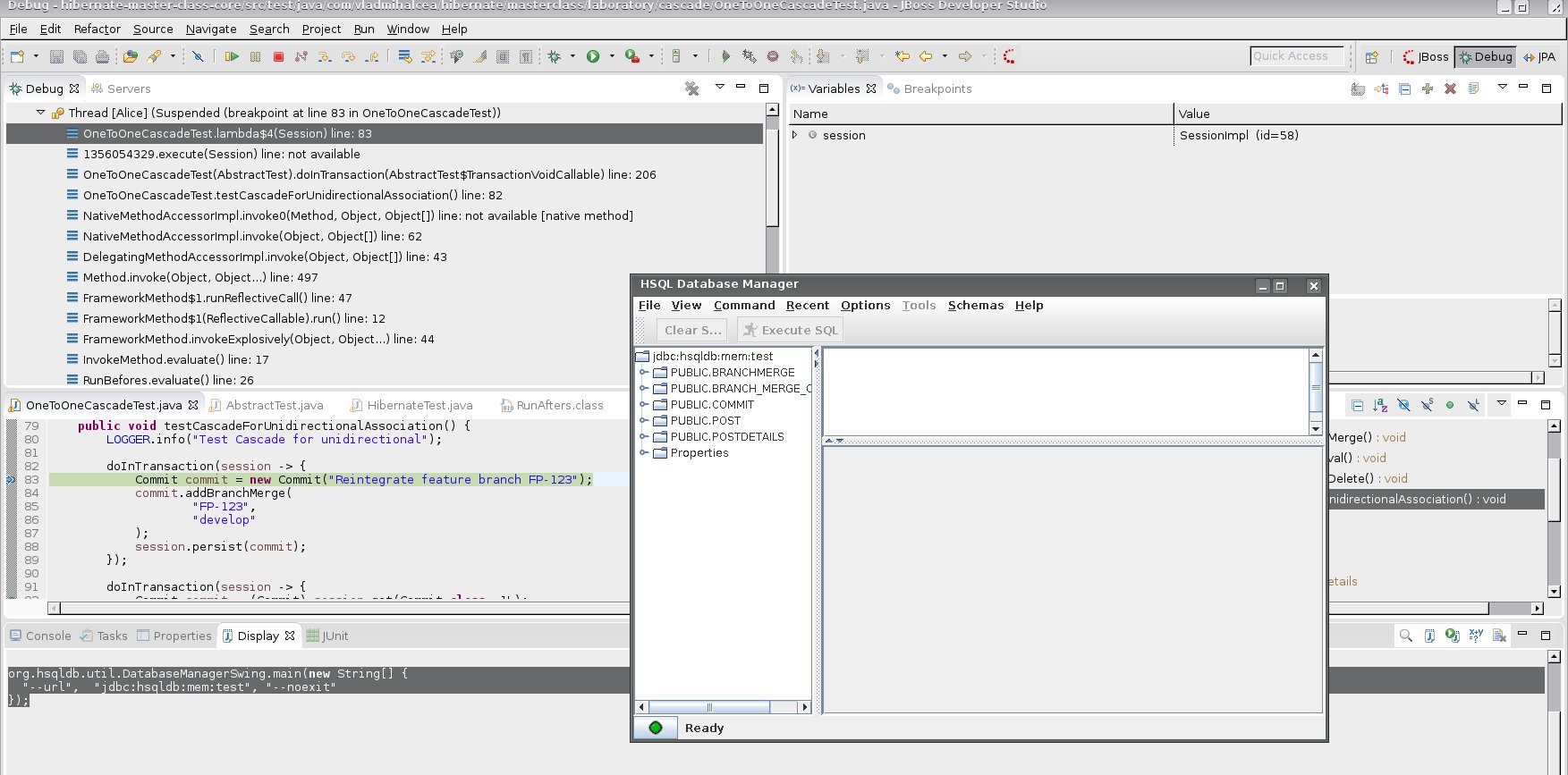 Trick to inspect an inMemory HSQLDB/H2 instance during a Unit Testing Debug inside the Eclipse IDE...