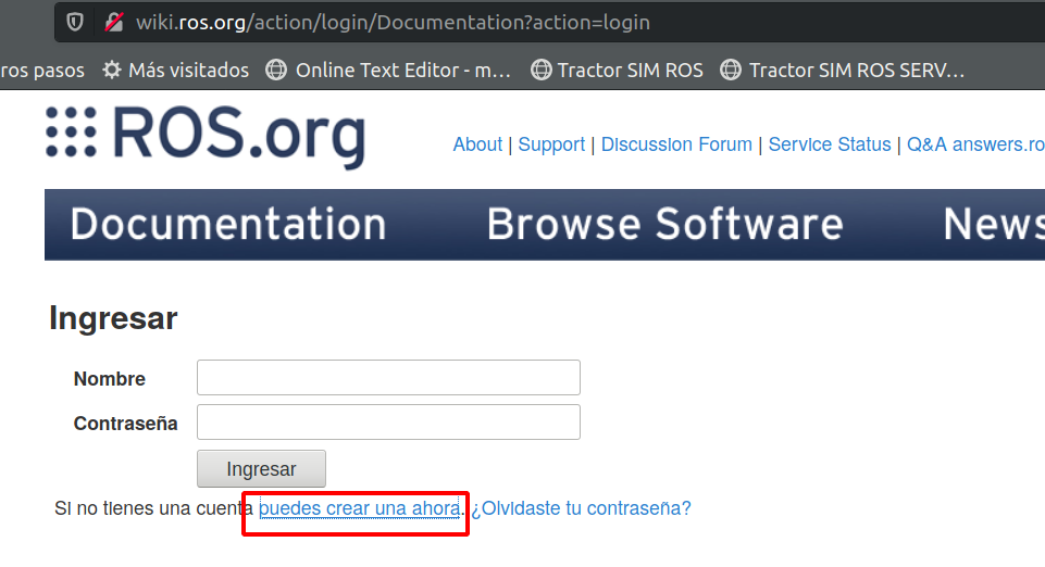 Vamos a la pagina de la wiki de ROS y vamos a crear un usuario...