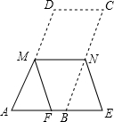- (19聊城) 如图,在Rt△ABC中,∠ACB=90°,∠B=60°,DE为△ABC的中位线,延长BC至F,使CF=$\frac{1}{2}$BC,连接FE并延长交AB于点M.若BC=1,则△FMB的周长为___. [9/2]