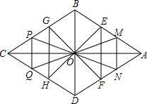 - (11杭州) 图形既关于点O中心对称,又关于直线AC,BD对称,AC=10,BD=6,已知点E,M是菁优网线段AB上的动点(不与端点重合),点O到EF,MN的距离分别为h1,h2,△OEF与△OGH组成的图形称为蝶形.蝶形面积S的最大值是___. [15/2]