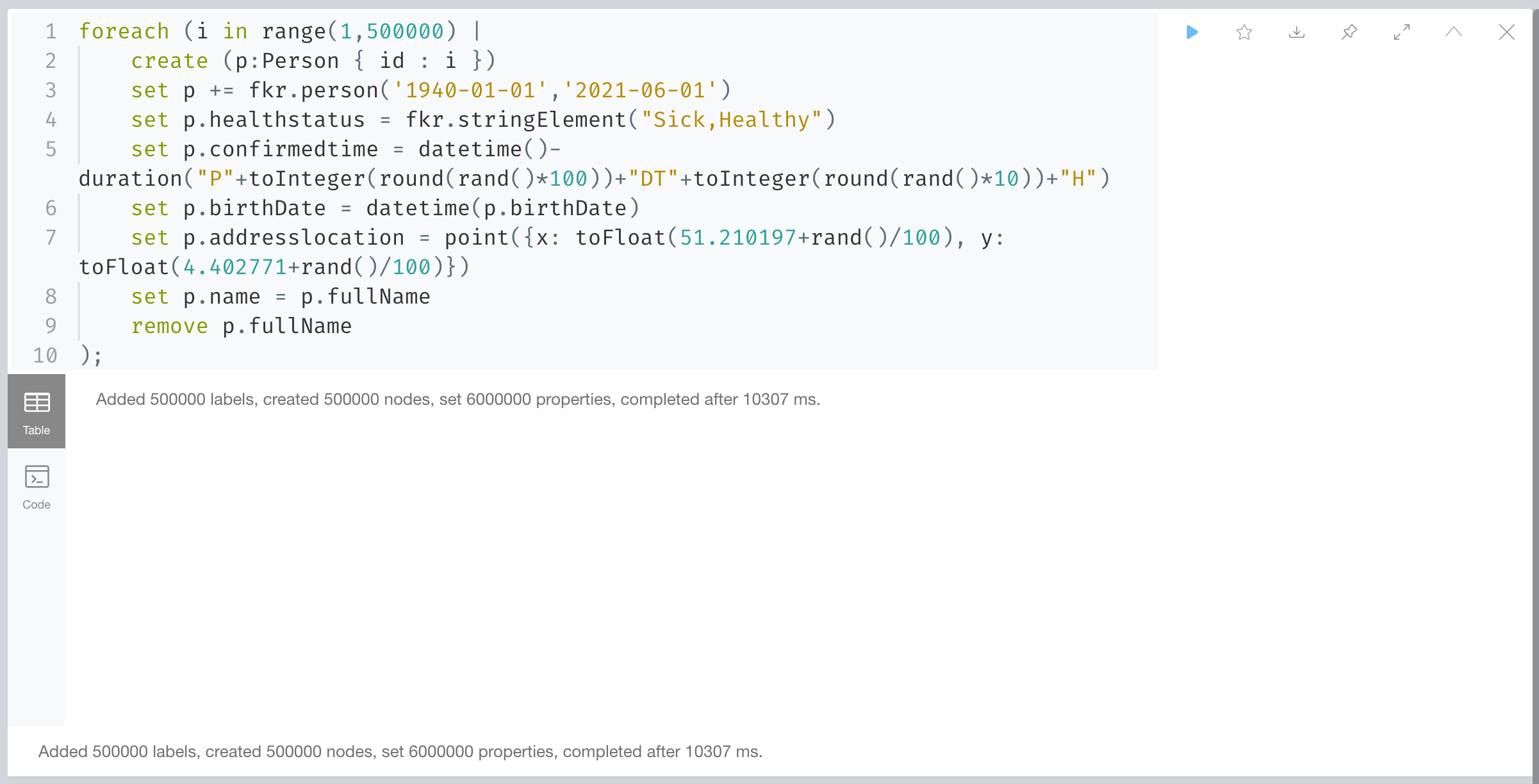 {batchSize:25000, parallel:false});The randomisation makes for some people to stay unconnected. Not a problem - real life that would also be the case, right? Some people just don't go out :) ...