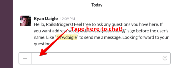 You don't have to just stay in the #railsbridge channel either! The whole Triangle Devs Slack community is open to you. Go to the #general channel if just want to interract with our local development community. There are lots of people willing to help out, just let them know what your experience level is and I'm sure you can get your question addressed.