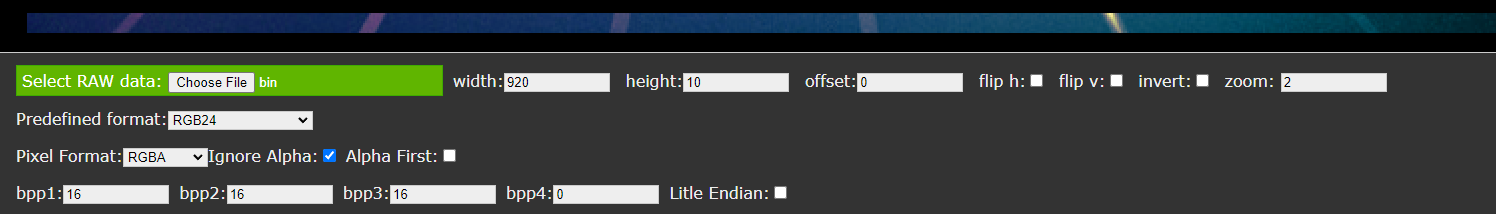 A lot (read, almost exclusively) double bytes without a lot of sharp changes in value. Now this made me suspect image data, so I popped one of the files into my favourite tool for analysing raw pixel data https://rawpixels.net/. Fiddling around with the pixel format and width for a bit, yields a very legible slice of an image: