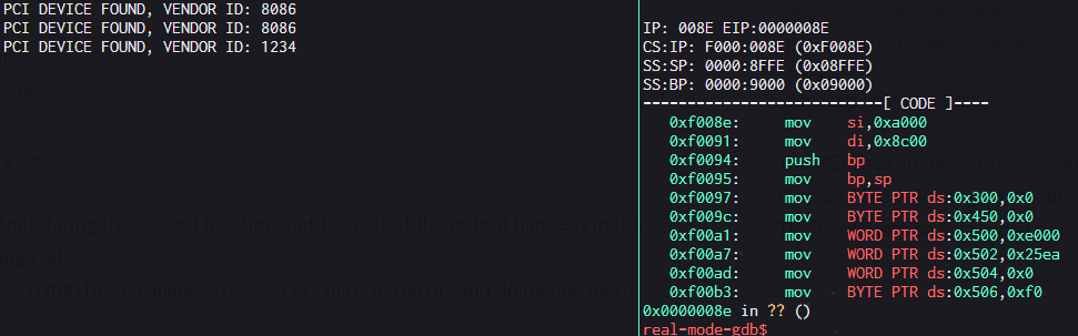 Now I love gdb, great debugger. Add pwndebug on top of it and maybe the best debugger 🤔 But you know what gdb isn't amazing at? Remotely debugging real-mode 16-bit x86 code 😅 If you just connect to the qemu gdb stub as-is, you won't get disassembly (the instruction pointer is wrong) and all the registers will have wrong values.