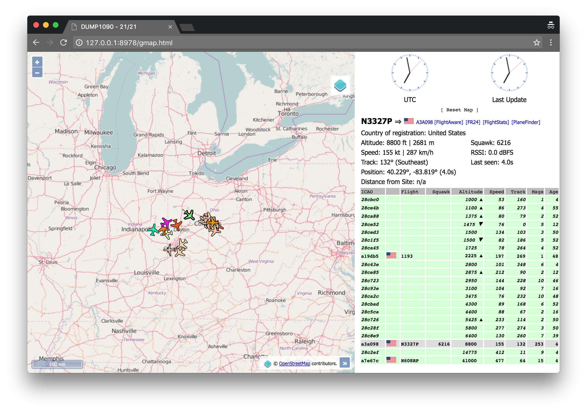 Beware: both browser windows (dump1090’s and dump978’s) will say “dump1090”, since we just copied dump1090’s webapp and are dumping 978 MHz data into it. The only difference is the port number in the URL.