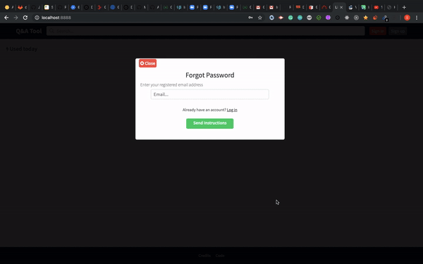 To Implement password reset functionality to the users with role of moderator or admin we will keep a button along the login form that will get a confirmation popup to send the reset instructions to the registered email.