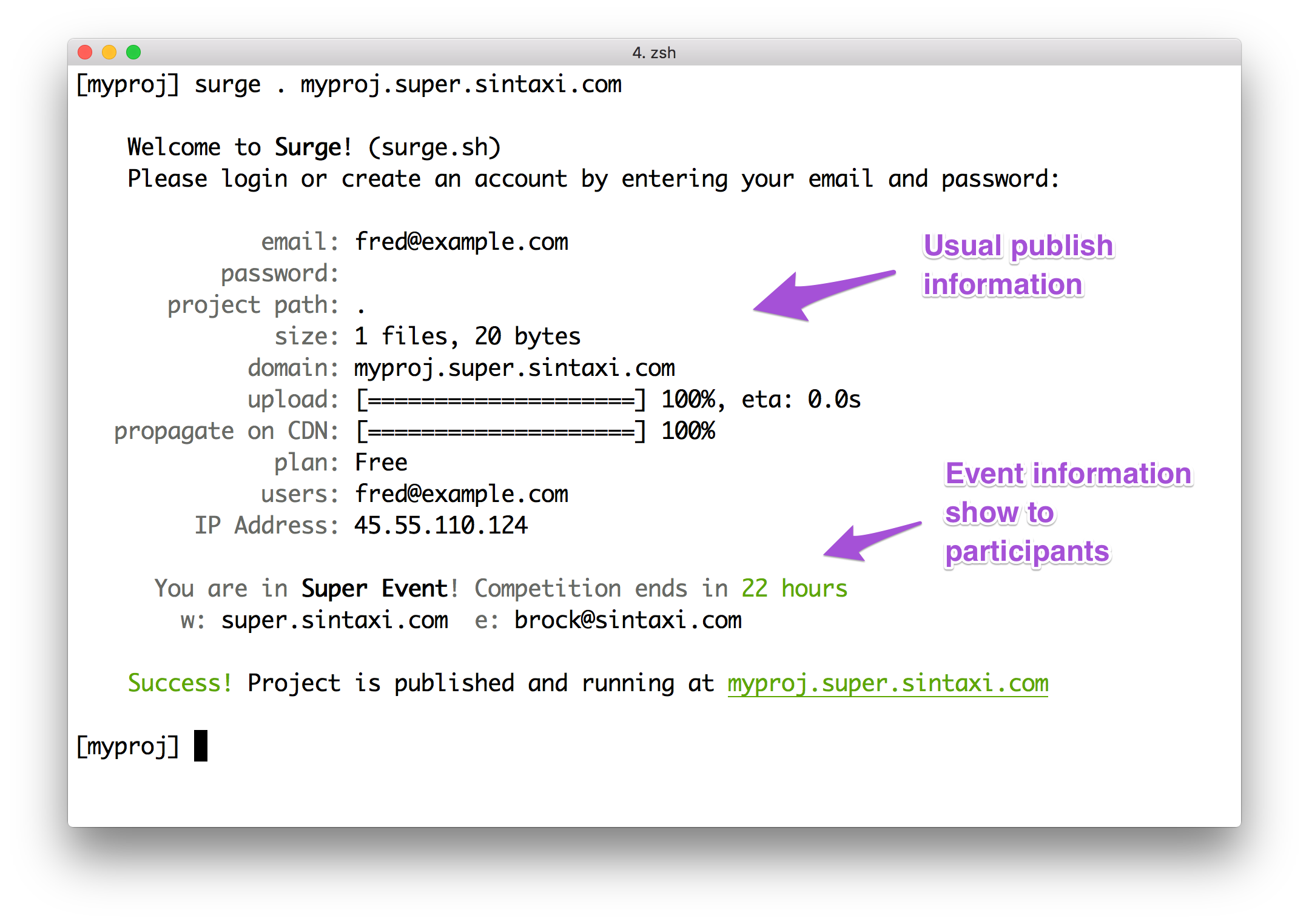 Hosting an event on surge is very simple. It's three easy steps.