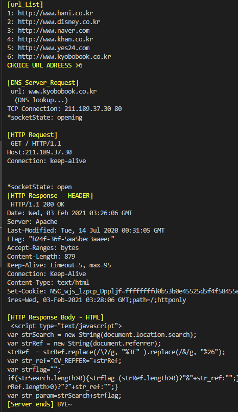 | console.log(title('[HTTP Response - HEADER]\n'), `${statusLine}\n${headers}`) | |