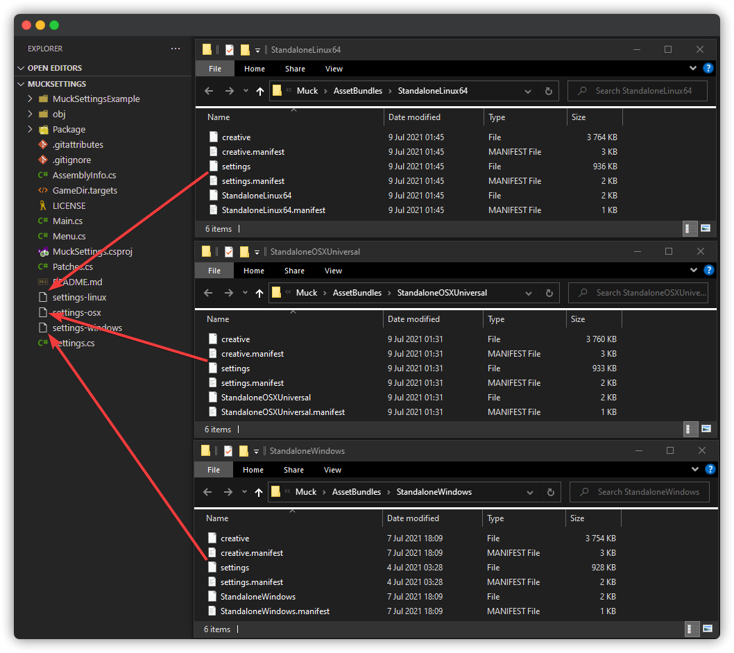 Copy these AssetBundles into your mod's C# project, and add a platform suffix. If you want your own platform-implementation, you can stop reading here, but if you wanna yank mine, feel free to. For my implementation, you need to make sure that all the AssetBundles are named the same thing, with a suffix that represents the platform (windows, osx, linux) in lowercase.