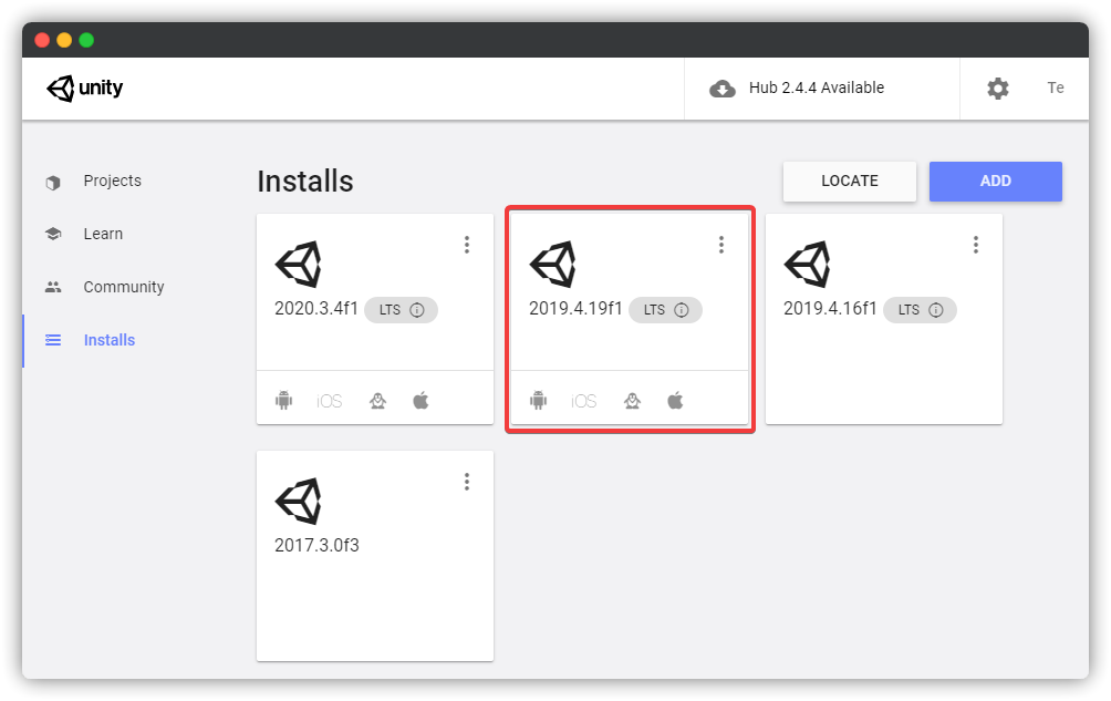 Go to the Installs tab in Unity Hub and press the 3 dots in the top right of your install.