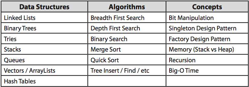 This list is meant to be a both a quick guide and reference for further research into these topics. It's basically a summary of that comp sci course you never took or forgot about, so there's no way it can cover everything in depth. It also will be available as a gist on Github for everyone to edit and add to.