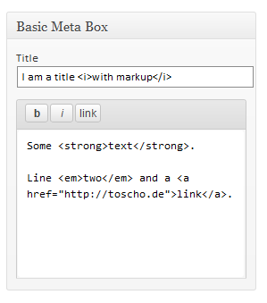 | $text = get_post_meta( $post_id, '_t5_basic_meta_box_text', TRUE ); | |