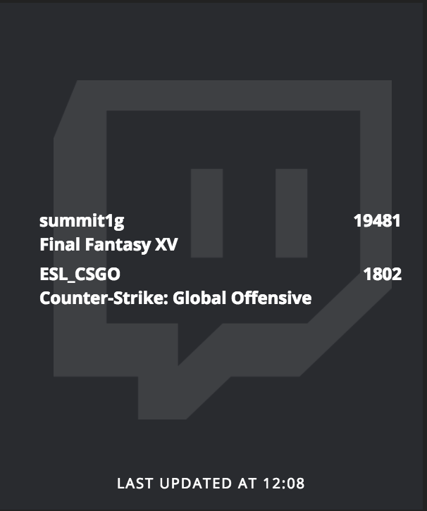 Simple Smashing widget to display followed and currently live twitch streams.