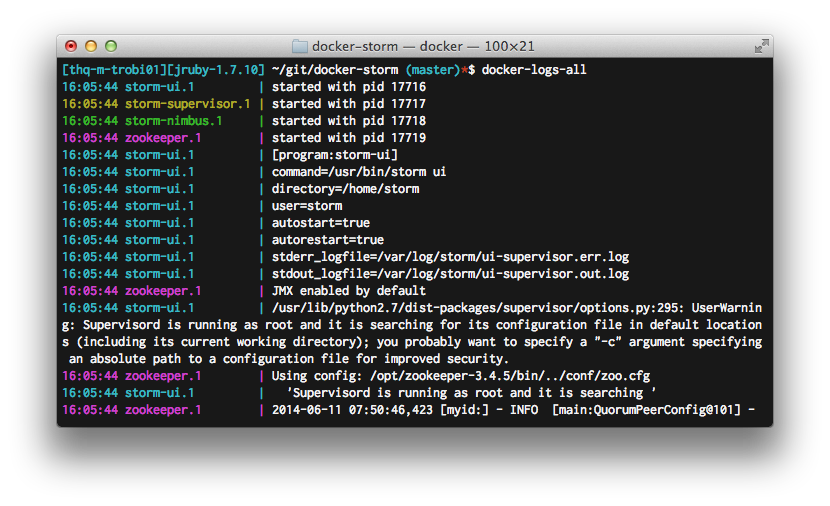 CLI: tail all Docker processes' logs with pretty colored labels and timestamps, using Foreman