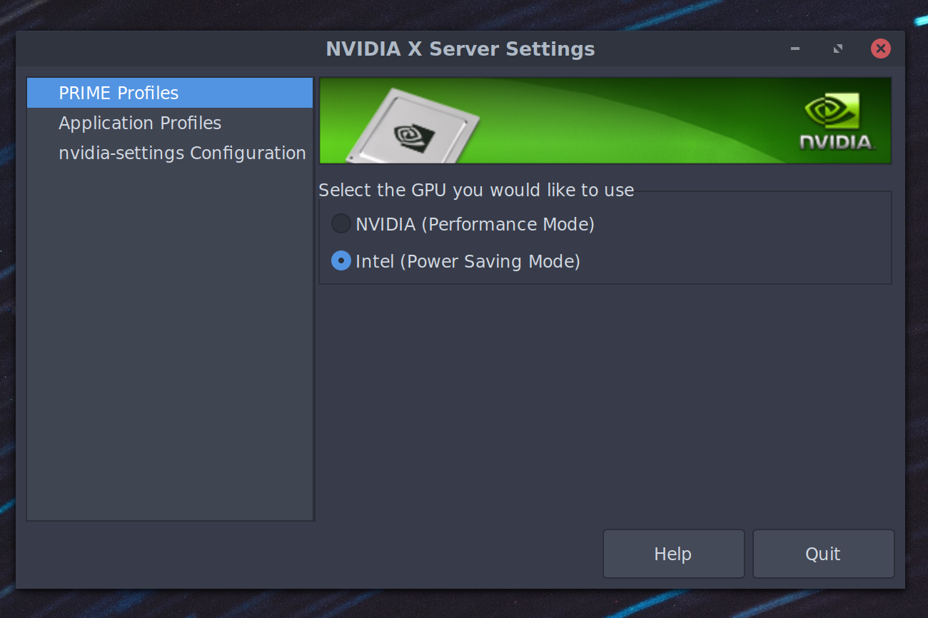 | sudo apt-get install nvidia-prime | |