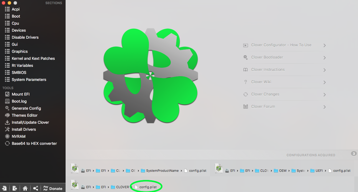 - Load the Clover config file follow steps 1 and 2 from earlier