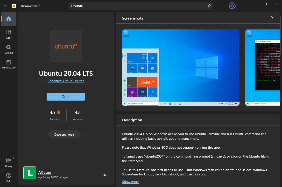 - Install Ubuntu from the Windows Store.