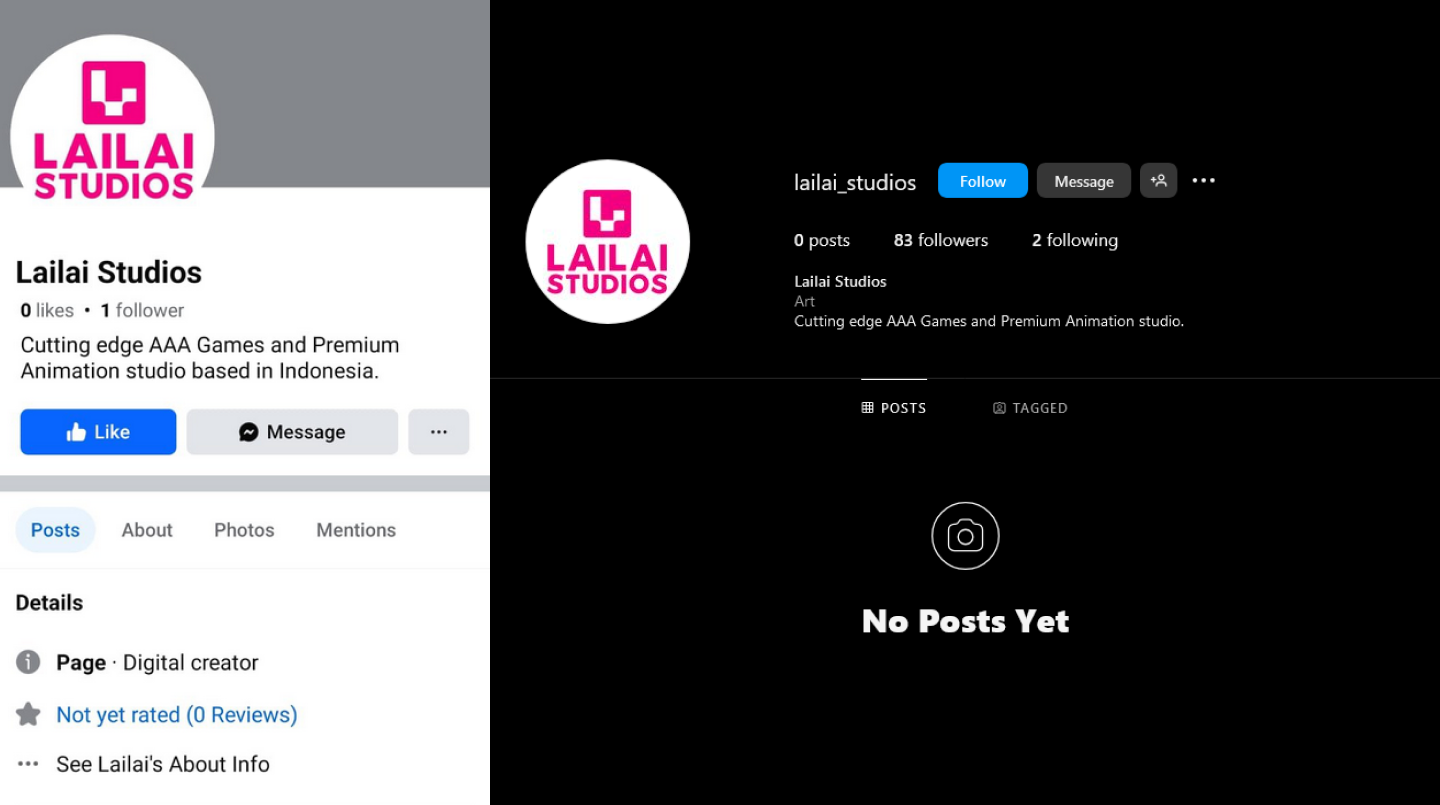 When the allegations, victim accounts, and proofs came to light in the morning of September 9th, another game studio with the name Lailai Studios was discovered on Facebook, Instagram, and their own website on the domain lailaistudios.com.