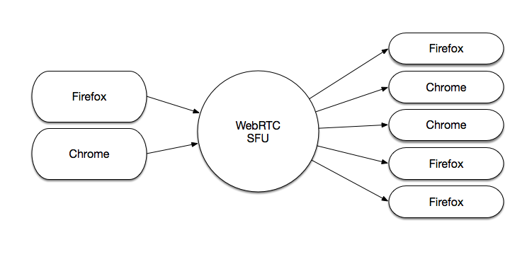 WebRTC SFU (Selective Forwarding Unit) は全ての通信をサーバ経由で配信する一つの方法です。 今までは MCU が主力でしたが MCU は CPU リソースを消費しすぎることから SFU が注目されています。