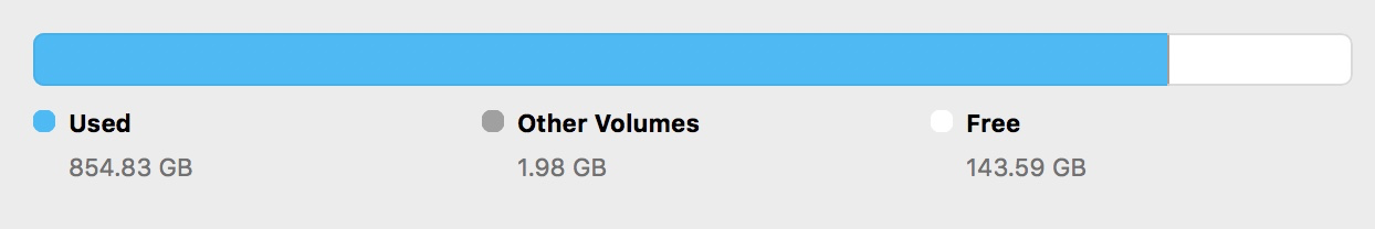 /dev/disk1s1 932G 797G 134G 86% /