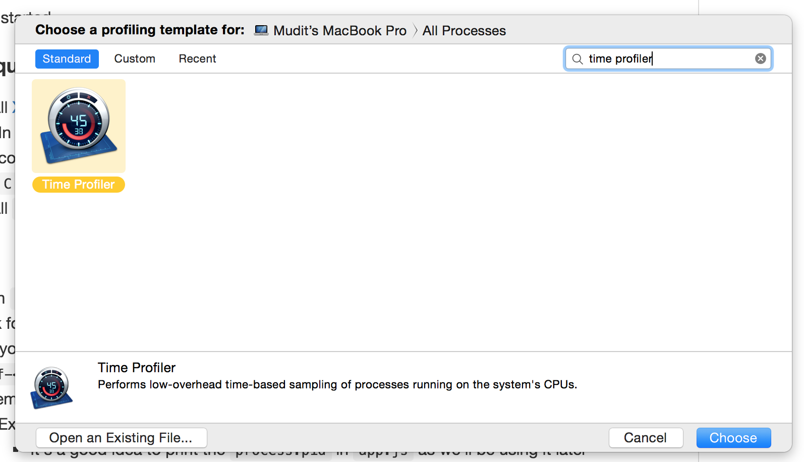 Recordbutton (the red button in the left corner in theTime ProfilerUI) to start recording a trace - Click